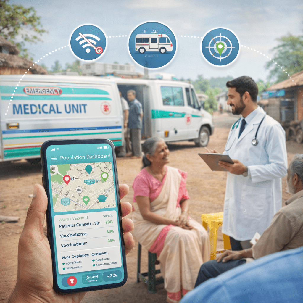 Centers on field systems, offline workflows, and care delivery.