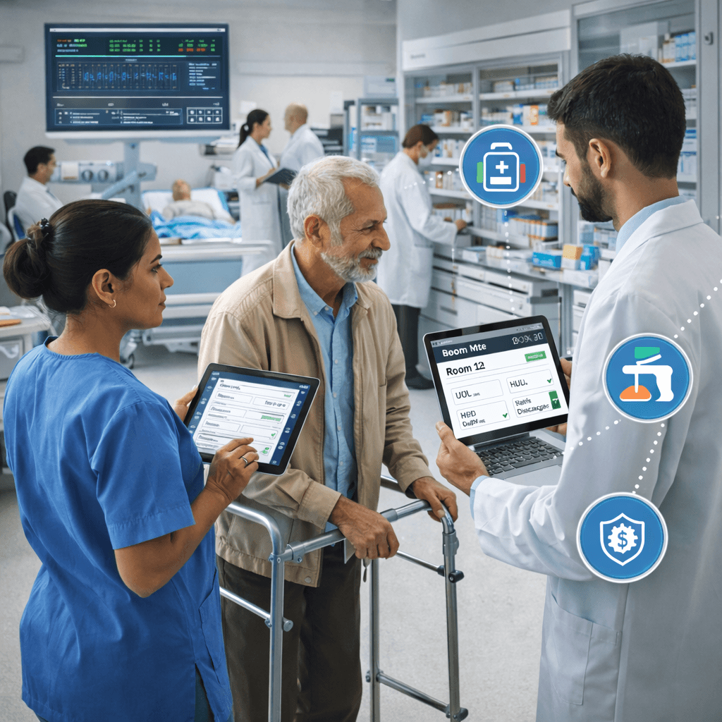 OPD, IPD, emergency, and ambulatory care workflows.